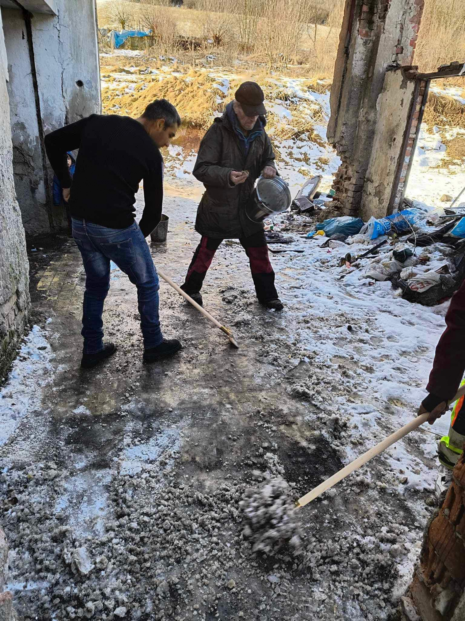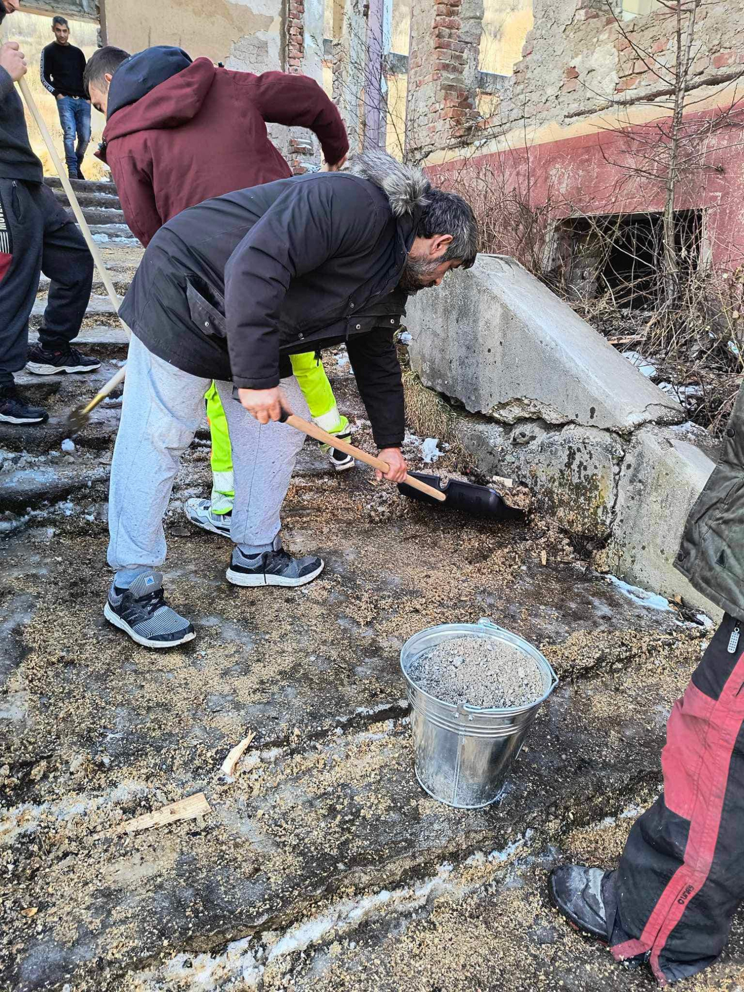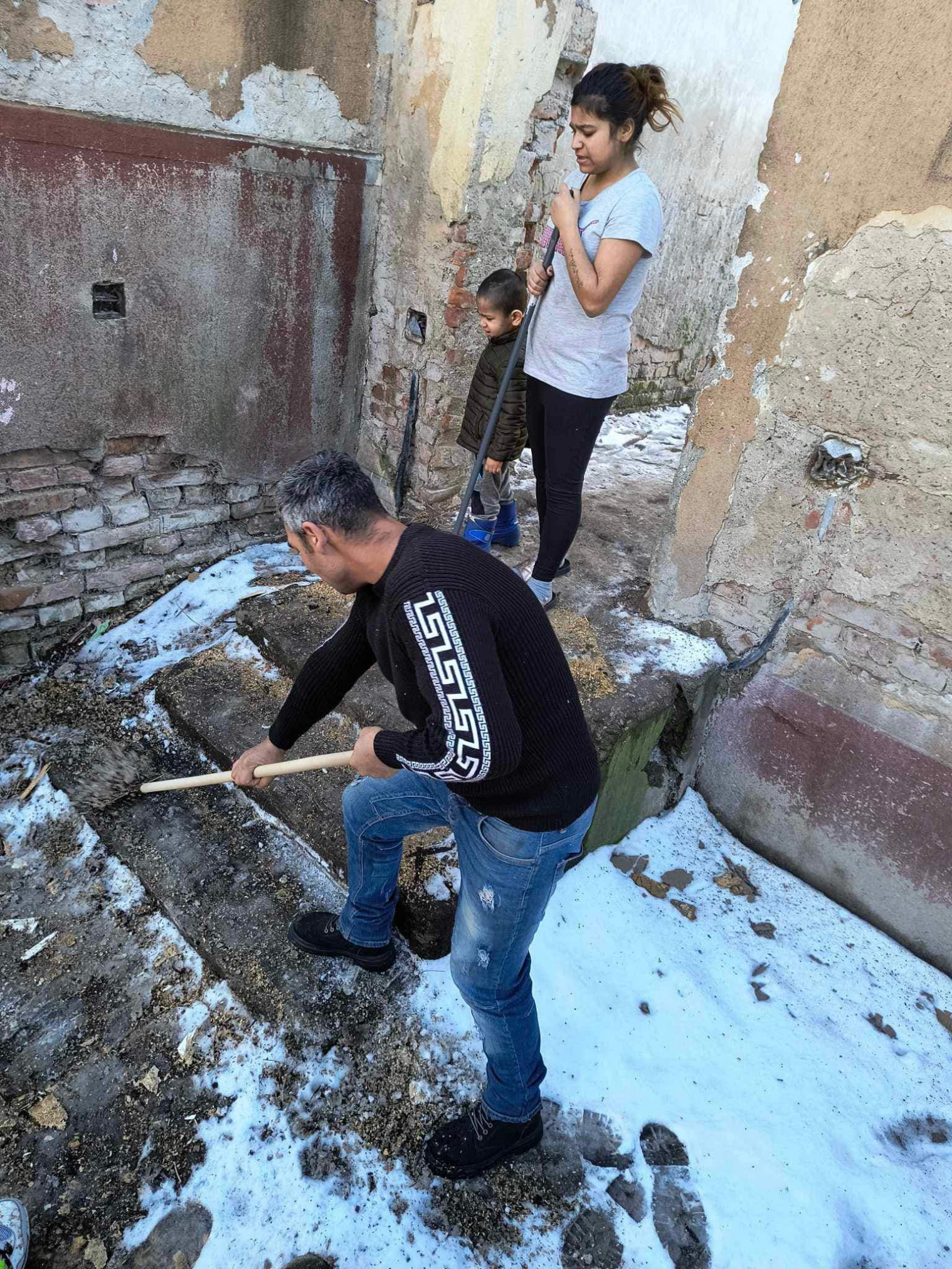Ďalšiu aktivitu dnes zorganizovala naša pracovníčka na bývanie spolu s asistentkou rozvojového tímu. Keďže chodia naše pracovníčky pravidelne do terénu, všimli si že schody pred bytovým domom obyvateľom sú zľadovatené, a práve preto sa rozhodli túto situáciu riešiť. Koordinátor Tibor Molnár poskytol pracovníčkam náradie, štrk a posypovú soľ, za čo mu veľmi pekne ďakujeme. Všetko bolo pripravené a obyvatelia bytového domu boli zapojení do aktivity tým, že si schody vyčistili a posypali štrkom a soľou. Môžme povedať , že všetci zúčastnení boli ochotní, nápomocní a boli radi , že sa táto aktivita uskutočnila. S pracovníčkou na bývanie sa už dohadovali na ďalších aktivitách, ktoré budú zamerané na zveľaďovanie ich príbytkov a okolia.