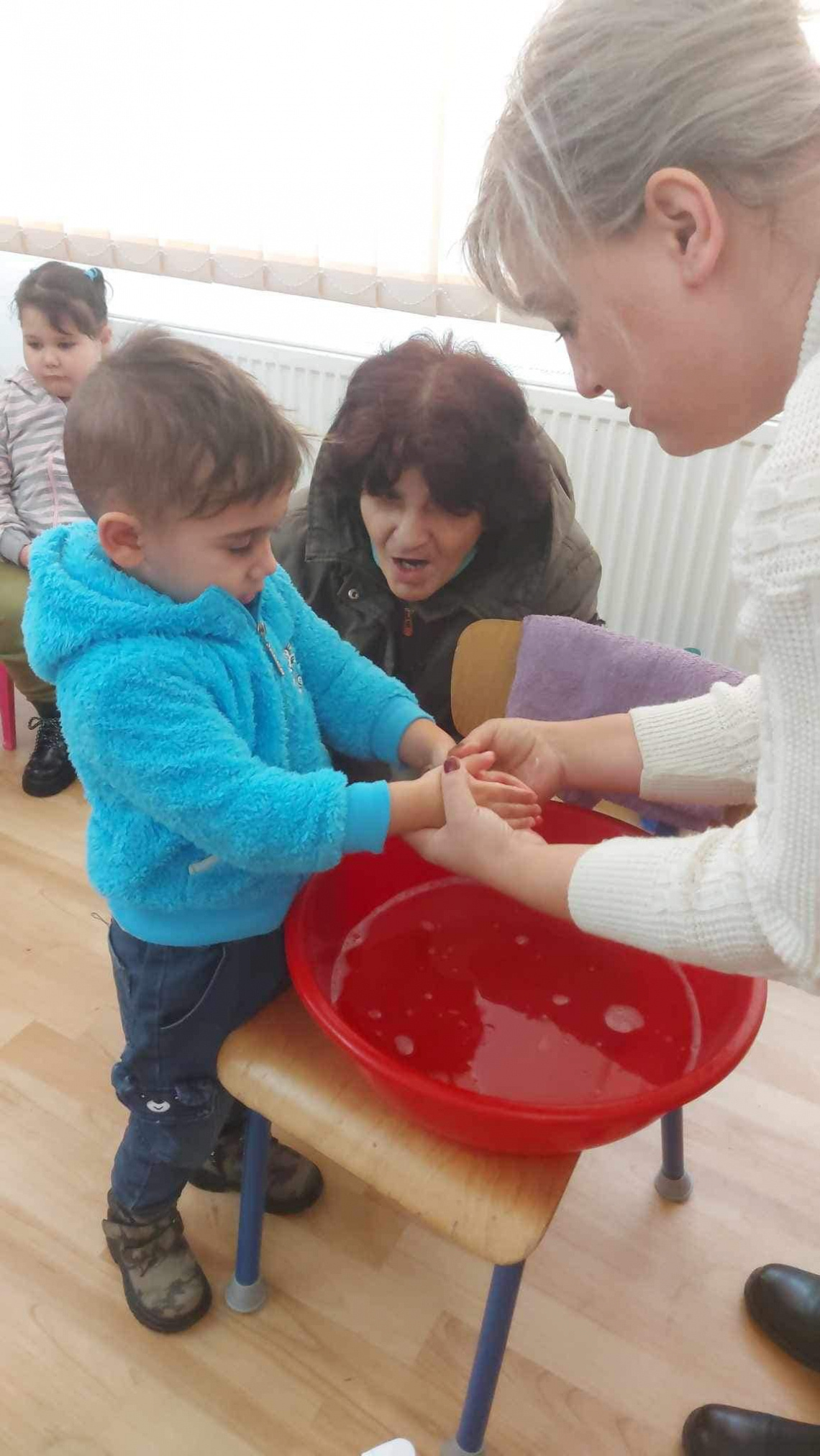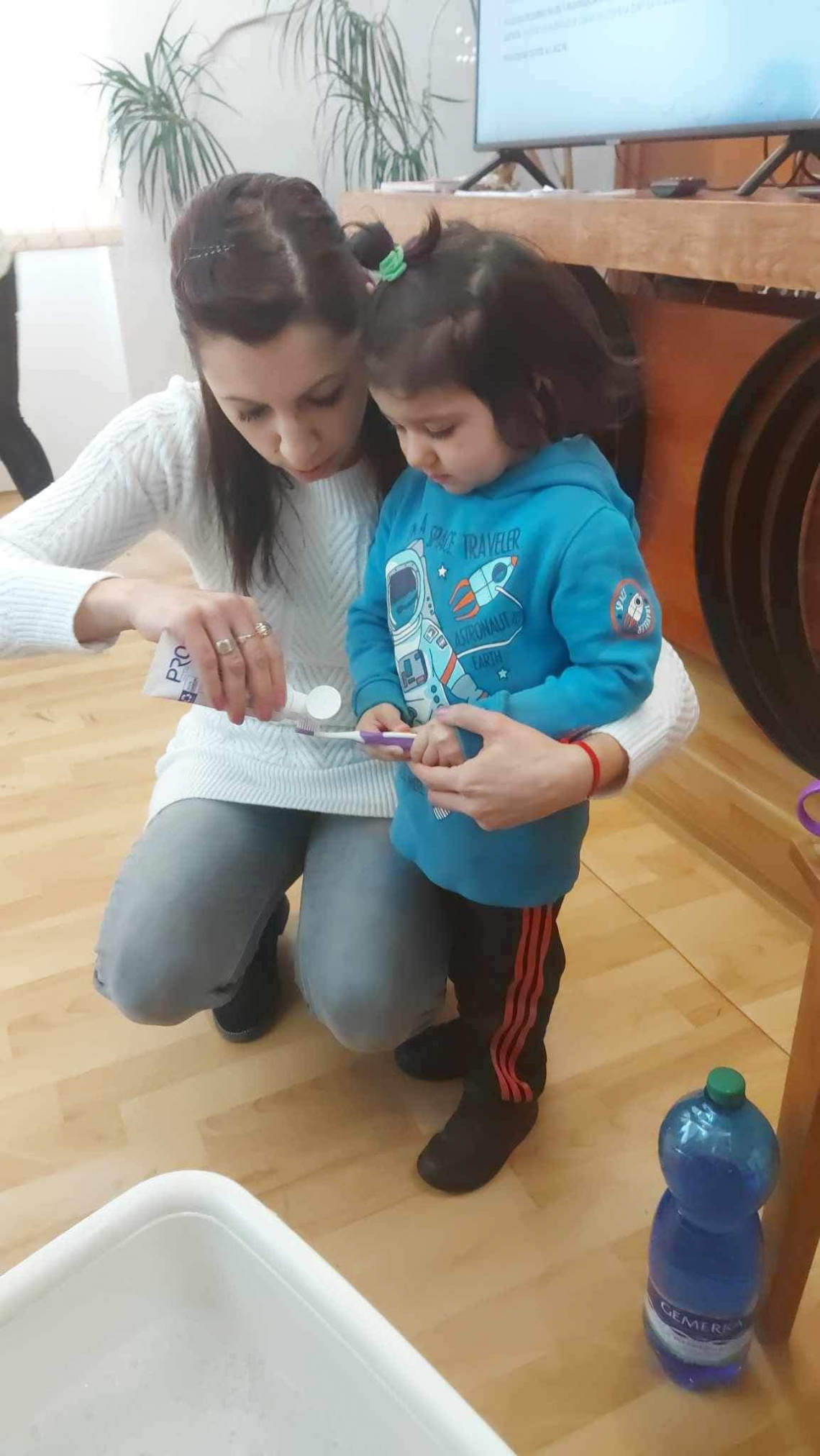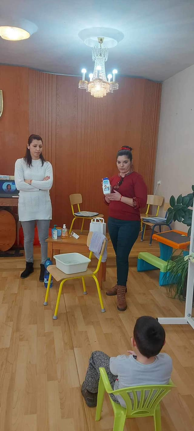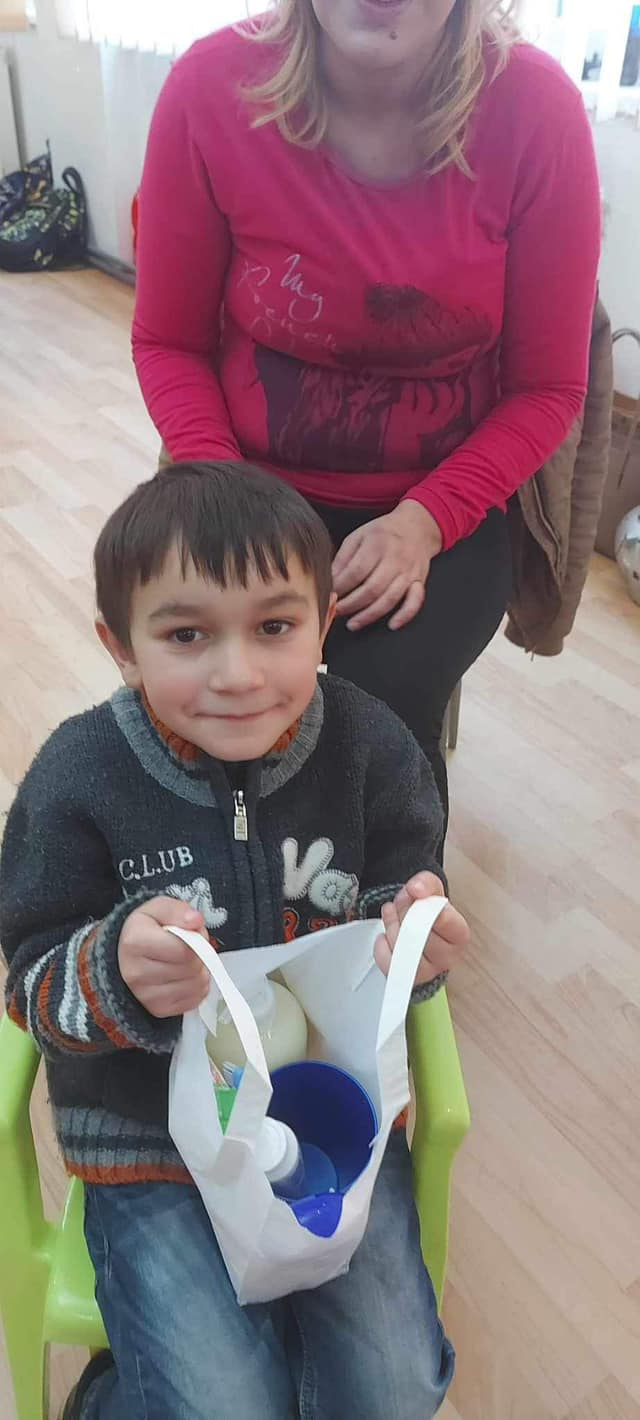 Tiež nám ukázali ako si vedia umyť rúčky. Ako prevenciu proti všiam sme do balíčkov pridali aj šampóny s hrebeňom na to určené. Mamičky sme poučili ako sa tieto prípravky používajú a ako často ich používať. Na záver aktivity si každé dieťatko v spoločnosti svojej mamičky vypracovalo svoj pracovný list. Musíme detičky veľmi pochváliť, boli šikovné, aktívne a hlavne vedeli, načo sa konkrétne hygienické potreby používajú.