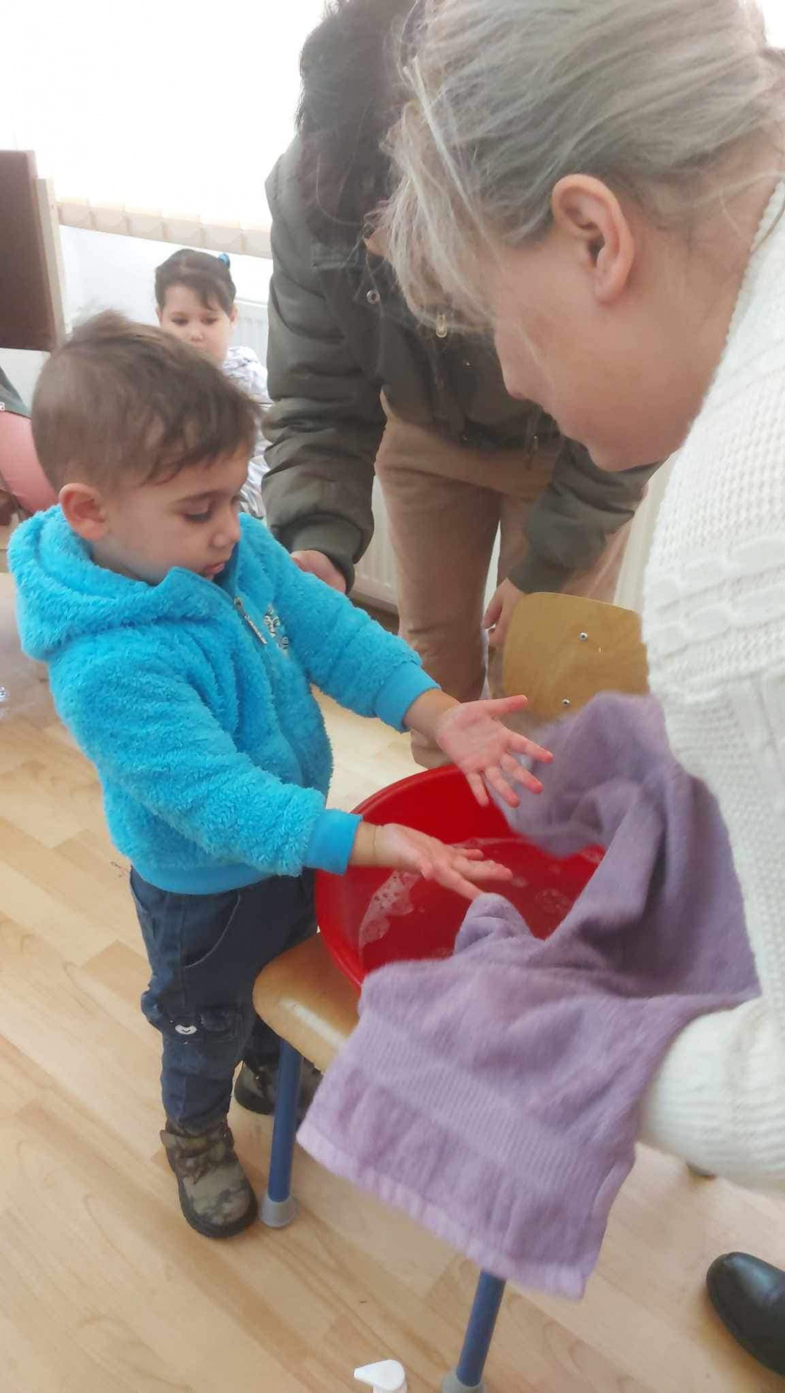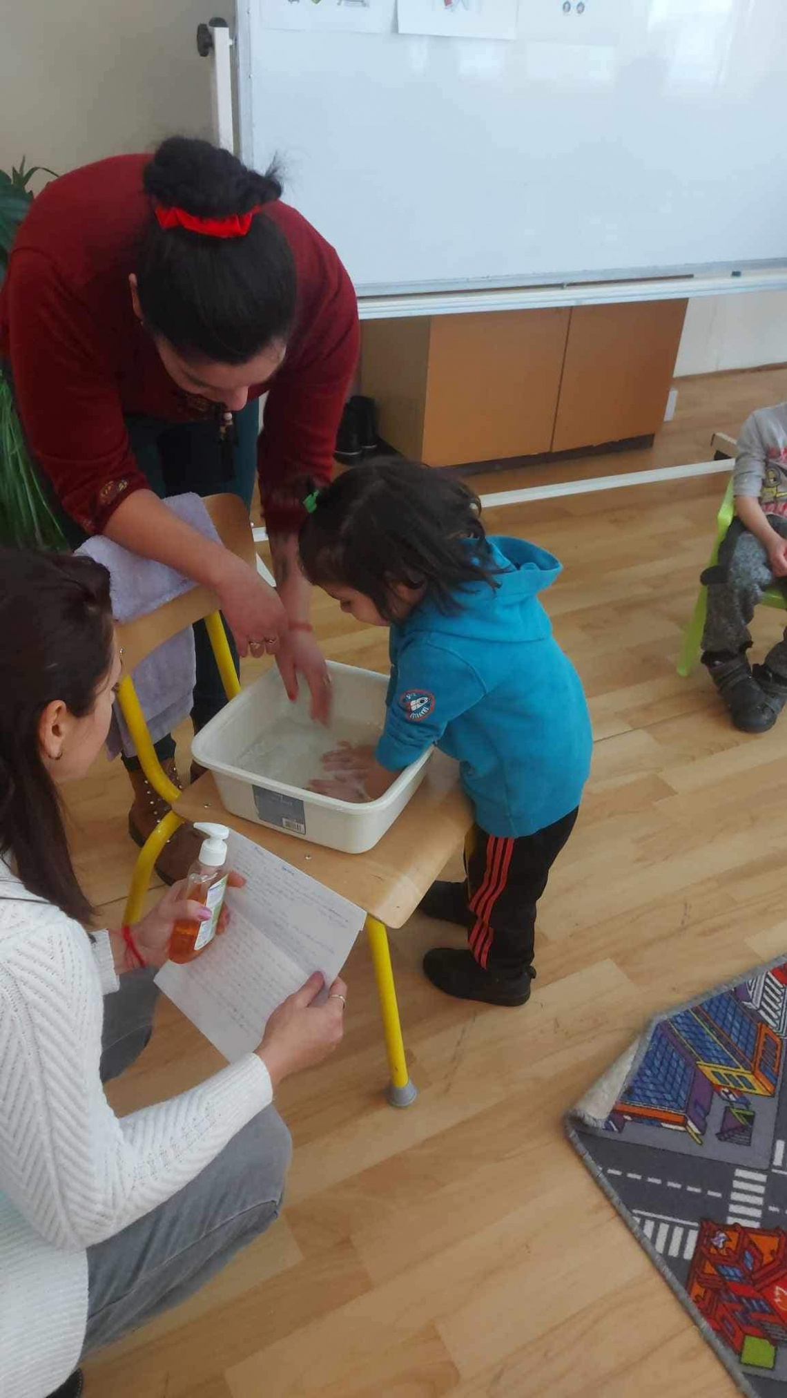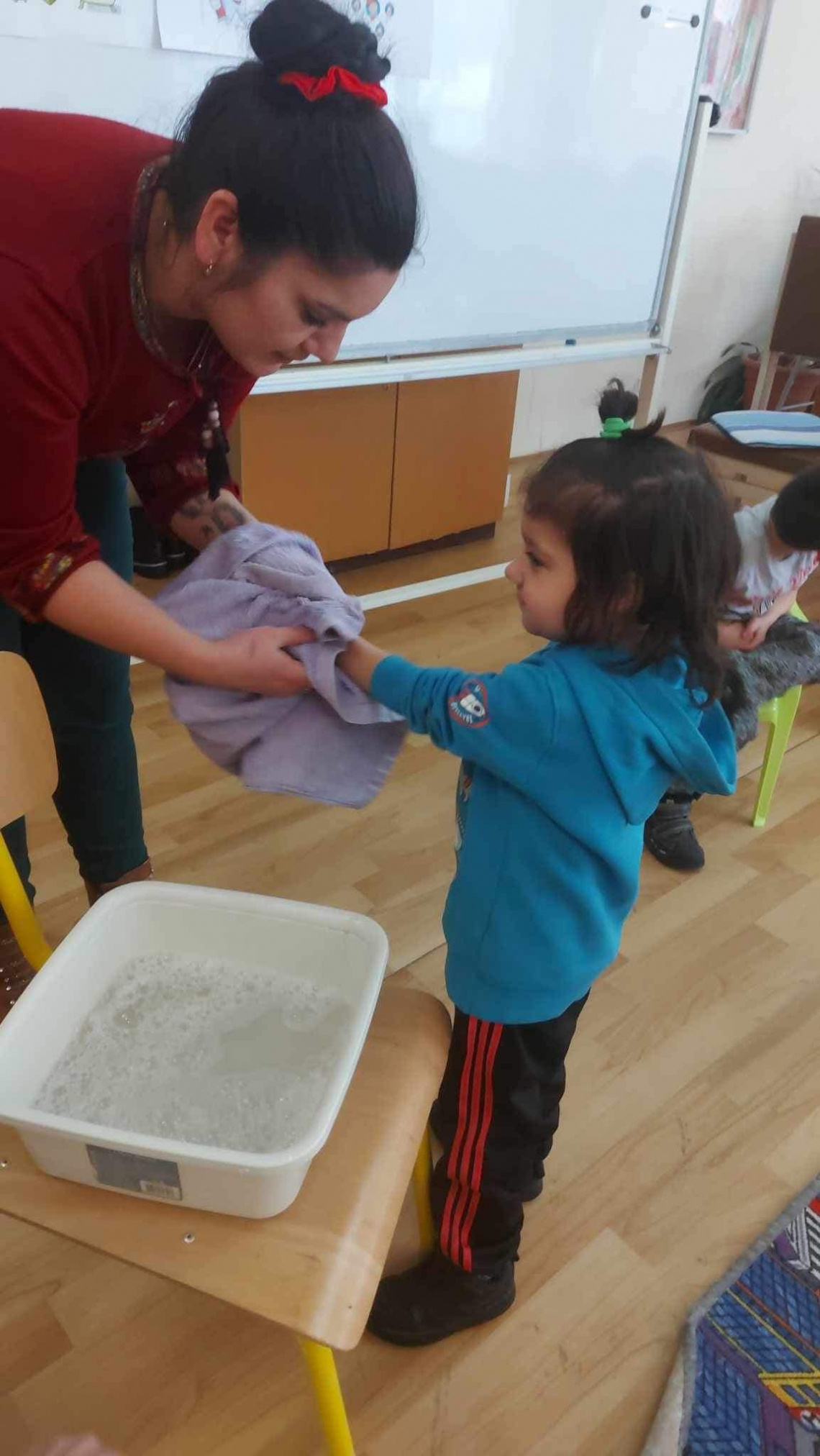 Tiež nám ukázali ako si vedia umyť rúčky. Ako prevenciu proti všiam sme do balíčkov pridali aj šampóny s hrebeňom na to určené. Mamičky sme poučili ako sa tieto prípravky používajú a ako často ich používať. Na záver aktivity si každé dieťatko v spoločnosti svojej mamičky vypracovalo svoj pracovný list. Musíme detičky veľmi pochváliť, boli šikovné, aktívne a hlavne vedeli, načo sa konkrétne hygienické potreby používajú.