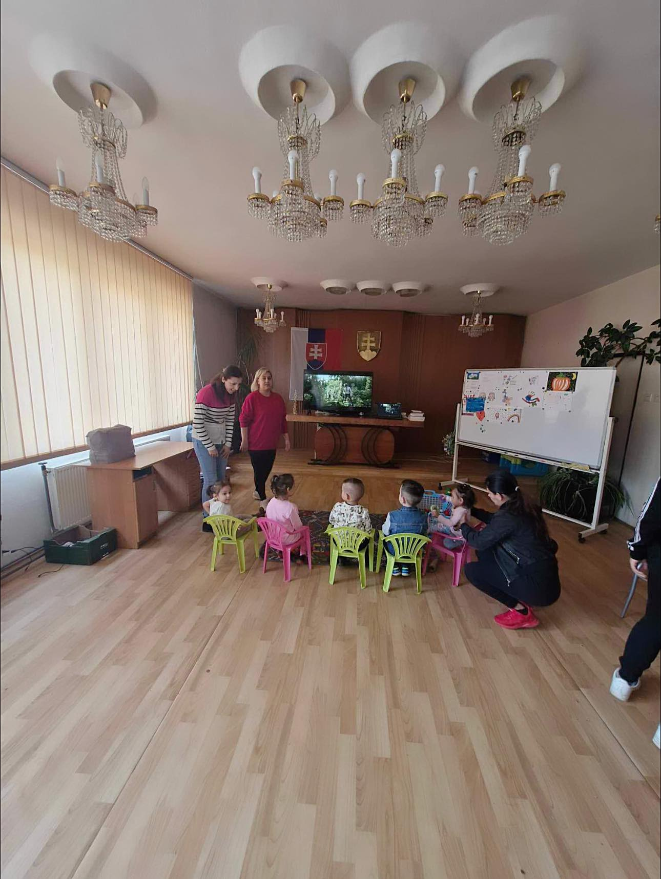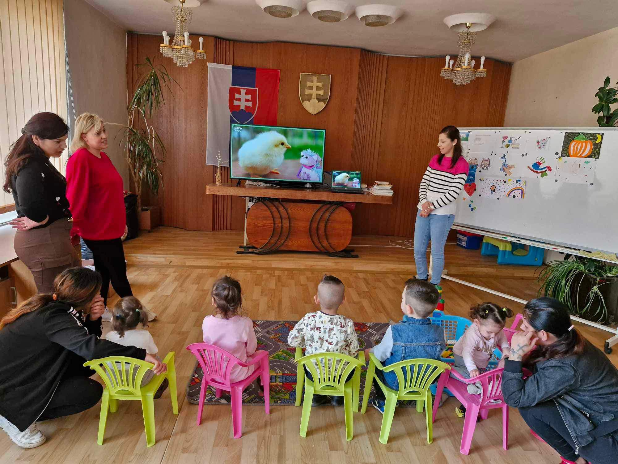 Nenementorka a Nene pracovníčky si pripravili aktivitu pre detičky od 0 do 6 rokov na tému zvieratká a ich zvuky. Na videách a kreslených rozprávkach spoznávali zvieratká. Naučili sa pomenovať zvieratká, ako robia zvieratká a čo nám konkrétne zvieratká dávajú. Každé dieťatko si s pomocou svojej mamičky vyfarbilo omaľovánku , na ktorej bolo zvieratko. No a na záver aktivity sa pohrali s kockami. Takto pekne bol stráveny deň mamičiek s deťmi v našom Centre rozvojového tímu.